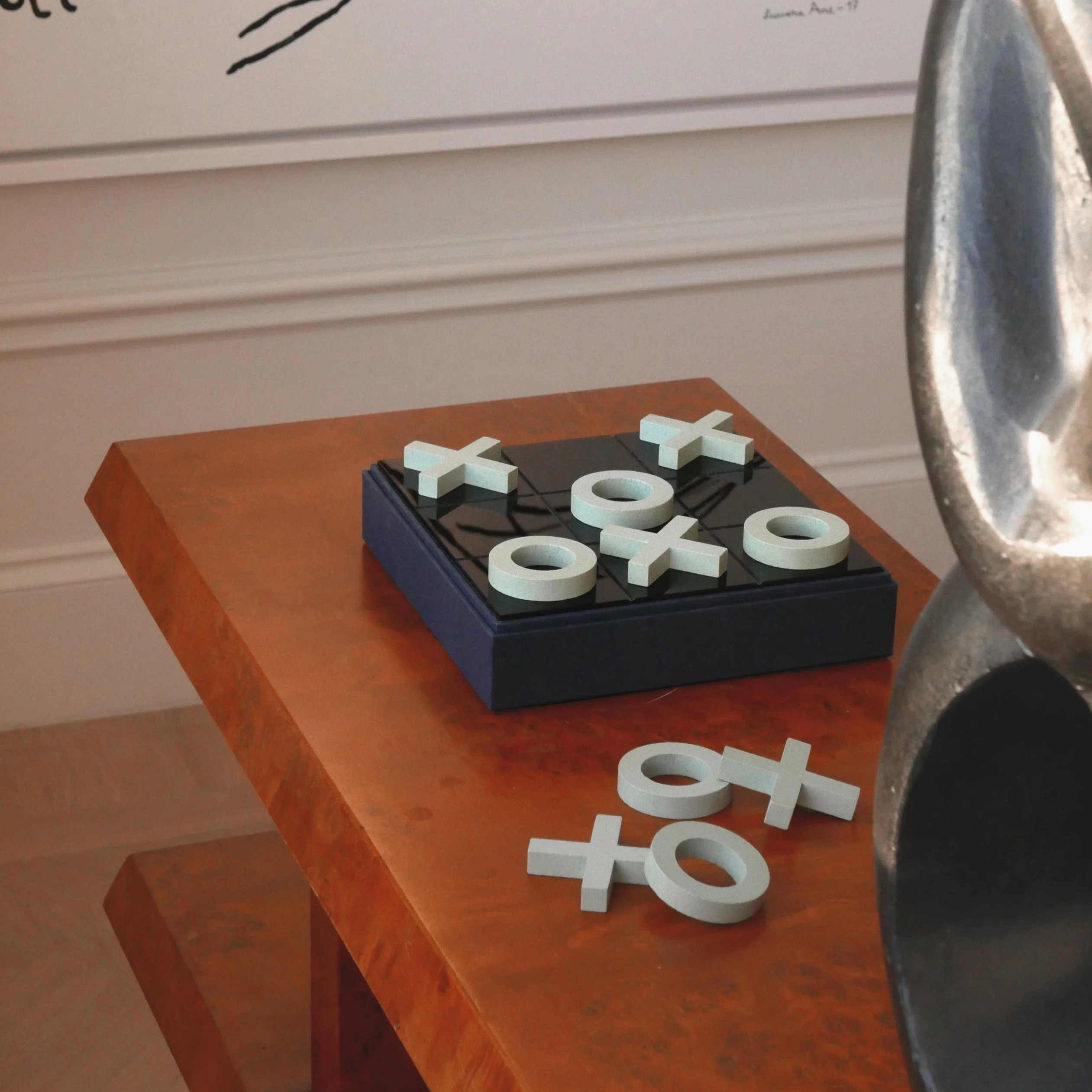 De stukken zijn gemaakt van gelakt hout. De doos is gemaakt van MDF en heeft een dun acryl laagje aan de bovenkant.